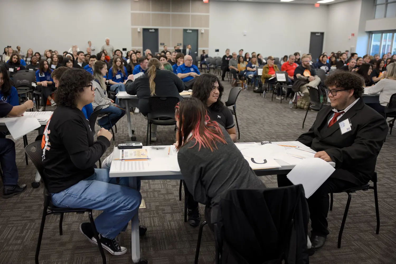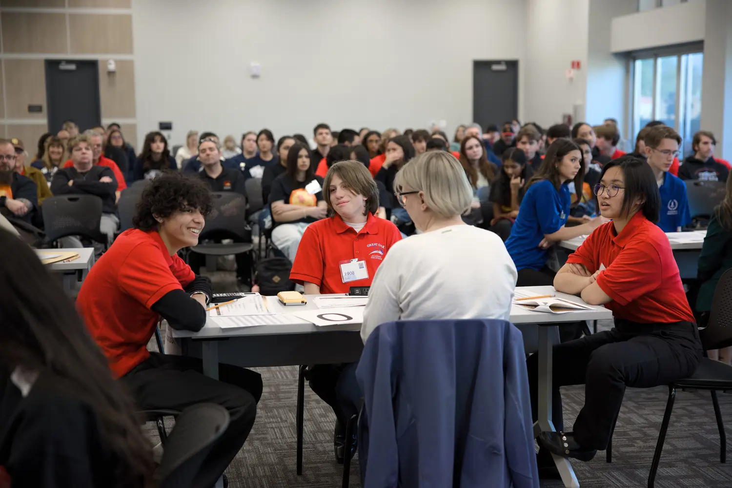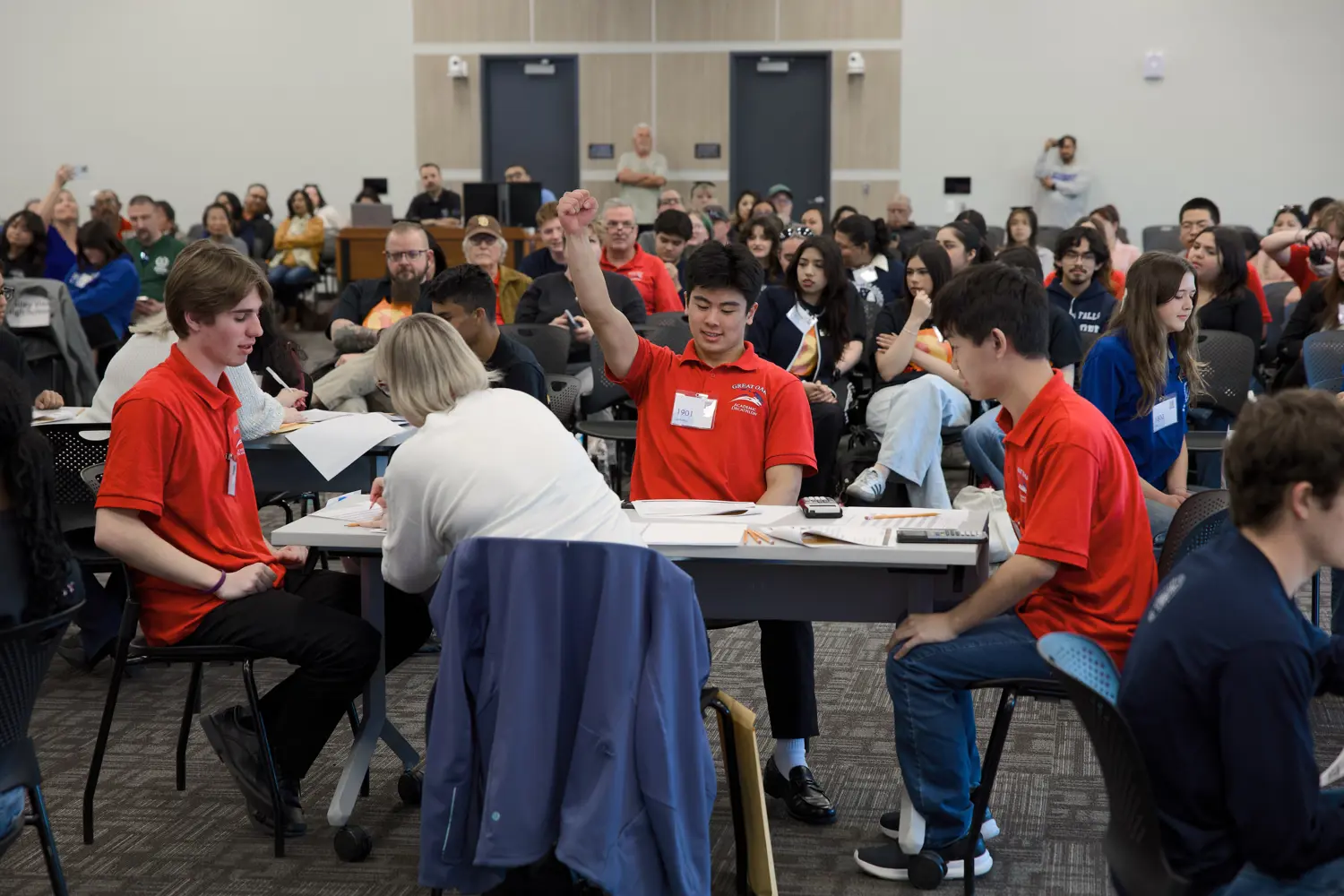Academic Decathlon, like its ancient Greek counterpart, is a 10-event contest. Participants demonstrate their academic strength by completing seven written tests, writing an essay, delivering a prepared and an impromptu speech, and participating in an interview. The Super Quiz is a team event held before a live audience. Each team is composed of nine students, three from each grade point category, and includes three Honor (GPA 3.80 - 4.00), three Scholastic (GPA 3.20 - 3.799), and three Varsity (GPA 0.00 - 3.199) students.